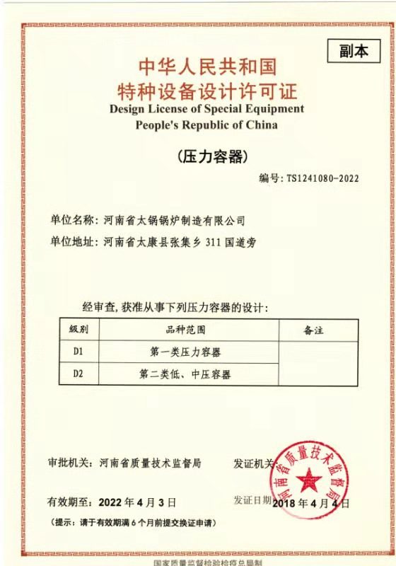 河南省太鍋鍋爐制造有限公司(原河南省太康鍋爐廠始建于1976年)始建于70年代初,經(jīng)40多年的艱辛探索,靠科技興業(yè),走科學(xué)管理之路,現(xiàn)已發(fā)展成為承接制造、安裝、設(shè)計大、中型供熱系統(tǒng),生產(chǎn):SZS燃油燃?xì)庹羝仩t、燃煤蒸汽鍋爐、燃油鍋爐、燃?xì)忮仩t、電加熱鍋爐、生物質(zhì)鍋爐、茶水鍋爐、有機(jī)熱載體鍋爐、熱風(fēng)鍋爐,蒸壓釜、燃油蒸汽鍋爐、燃?xì)庹羝仩t、燃油熱水鍋爐、燃?xì)鉄崴仩t并承擔(dān)安裝120噸熱水鍋爐、蒸汽鍋爐,生物質(zhì)鍋爐,加工制造一、二類蒸壓釜、壓力容器,化工機(jī)械的省一級**企業(yè)。